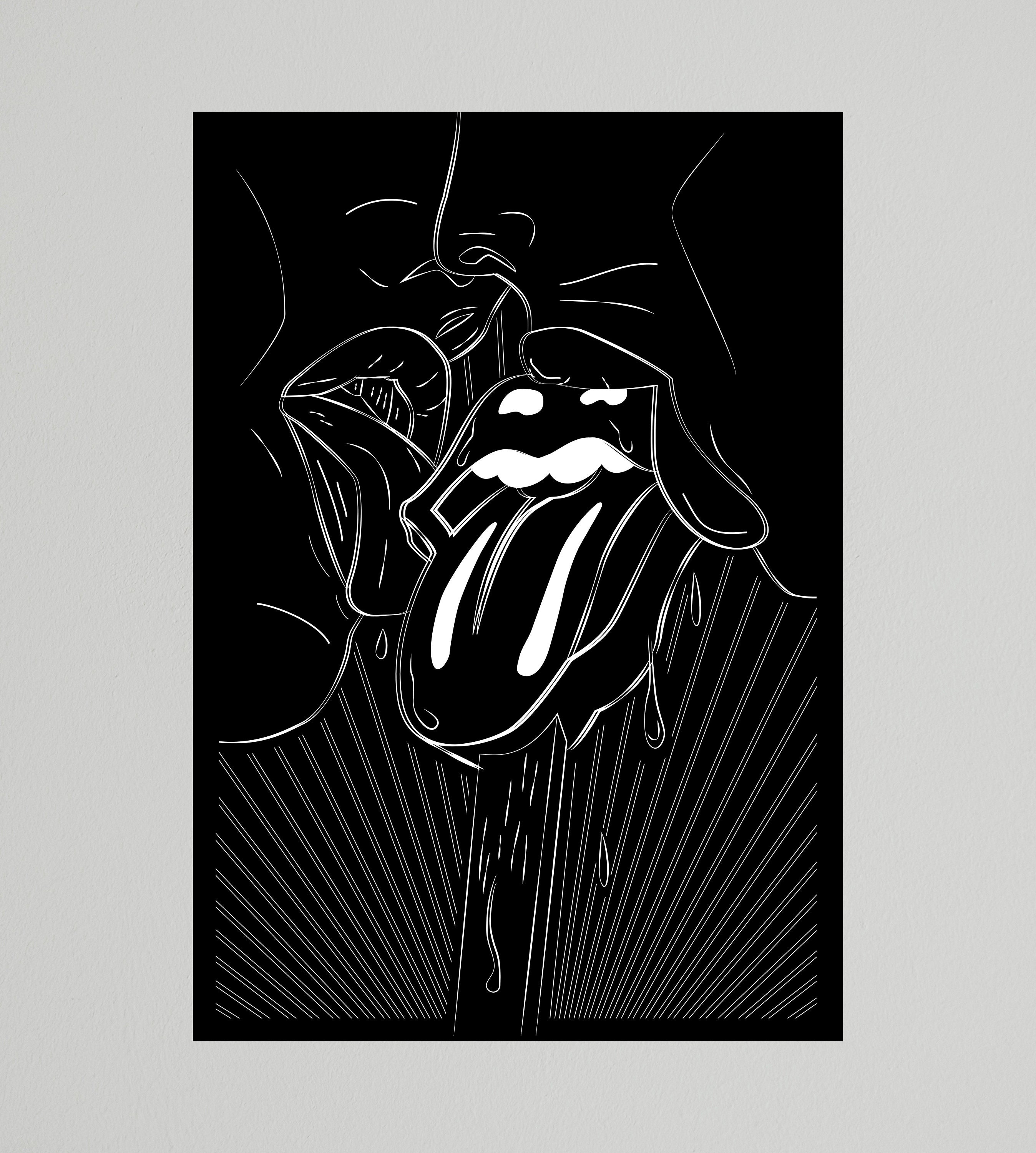 Vector rolling stones tongue logo. Rolling stones logo by vectornet. The pop art logo has become a piece of pop culture. Rolling stones lips and tongue logo vector inspired by mick jaggers famous lips. Original rolling stones tongue in bw ideal for print.
